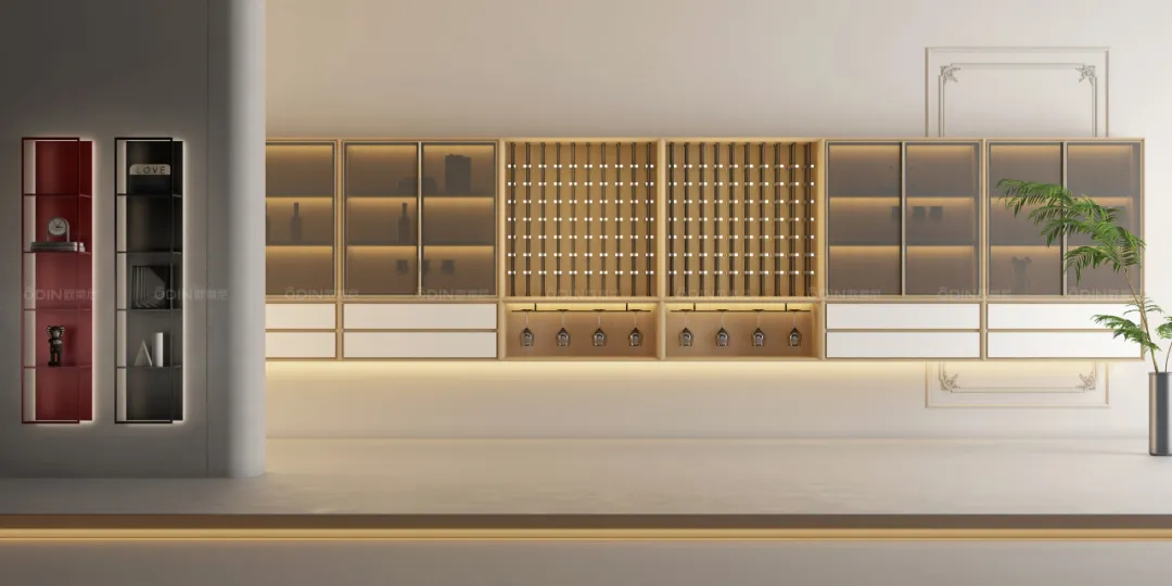 在歐蒂尼全屋定制的餐邊柜陪伴下,家的每一個角落都充滿了溫馨與美好。你可以在餐邊柜上擺放一些綠植或裝飾品,為空間增添一抹生機;也可以在用餐前,將餐具、酒杯等物品整齊地擺放在餐邊柜上,享受一場視覺與味覺的雙重盛宴。