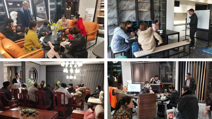 活動期間,全國各加盟店嚴格遵循總部統一要求,各大戰區經理也圍繞店面、渠道、團隊三個關鍵點,積極整合店面資源、制定并細分任務目標,為經銷商梳理活動獲客步驟,積極部署,力搶市場先機,贏戰終端。
