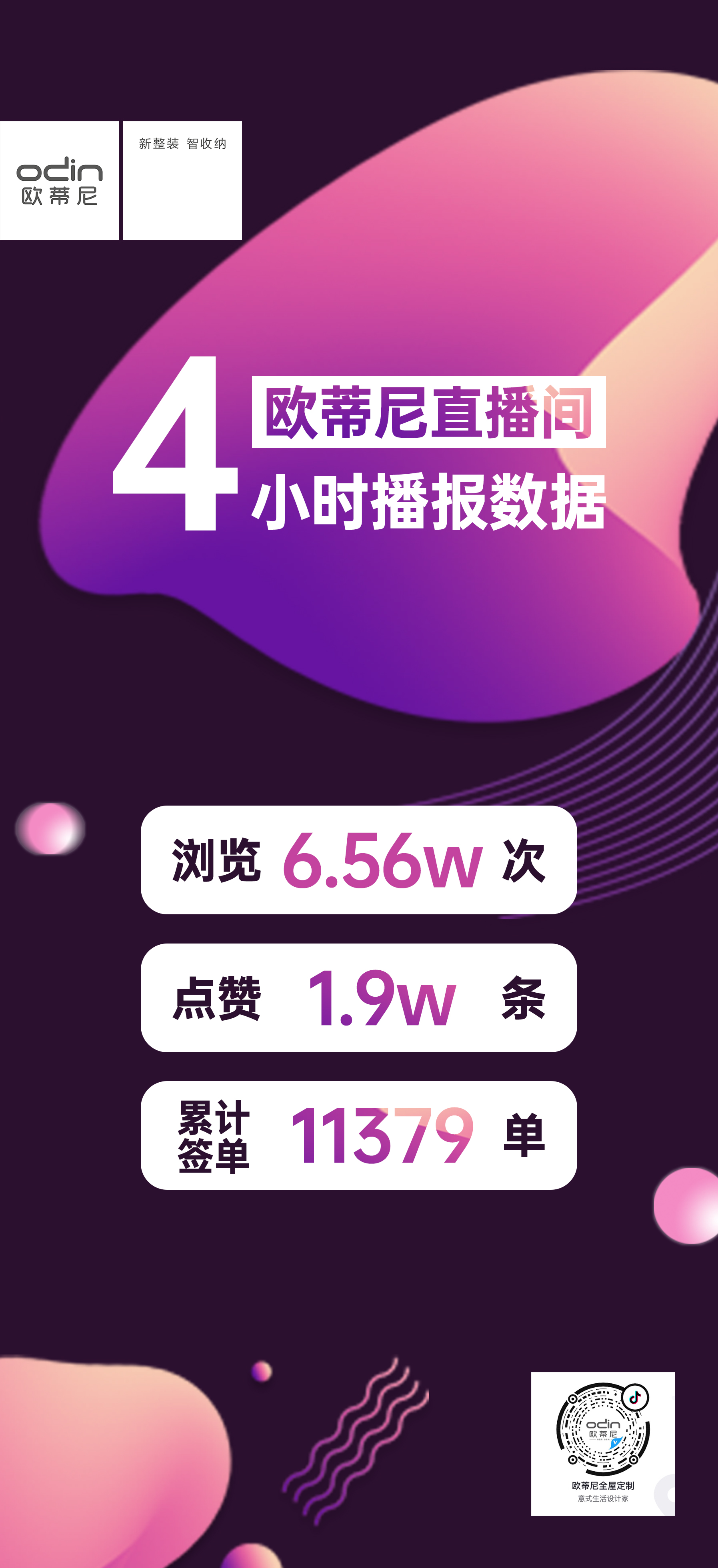 作為收官之戰,歐蒂尼以抖音直播為載體+線下推薦的形式,聚焦并細分市場作總結。通過廠家與終端活動相結合,集中優勢資源為廣大用戶帶來鉅惠福利。直播4小時,視頻點贊量突破1.9萬+,6.56W+直播在線觀看用戶,全國500+門店共累計簽單11379單。整個活動感恩回饋,各大終端門店簽單不斷,現場人氣爆棚,圈粉無數。