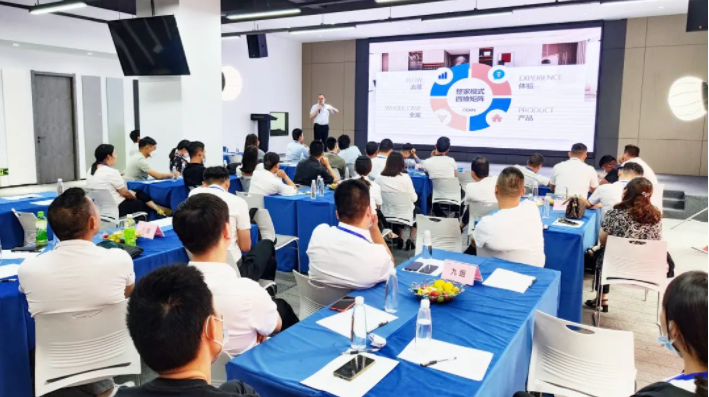 競逐新賽道,謀定新機遇。歐蒂尼家居董事長王光有先生親臨現場并就行業趨勢以及重點強調歐蒂尼引入整家模式。著重強調閉環思維是數據化運營的重中之重!要不斷提高我們的戰略認知。加盟商朋友們都站起來,仔細聆聽!