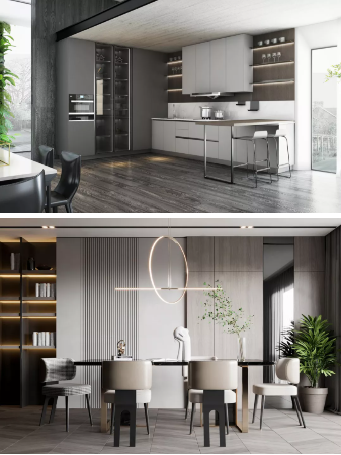 產品設計思路:遵循意式極簡輕奢風的開發思路,采用超高門板運用陣列的組合方式,塑造產品的線條感,流暢感。
